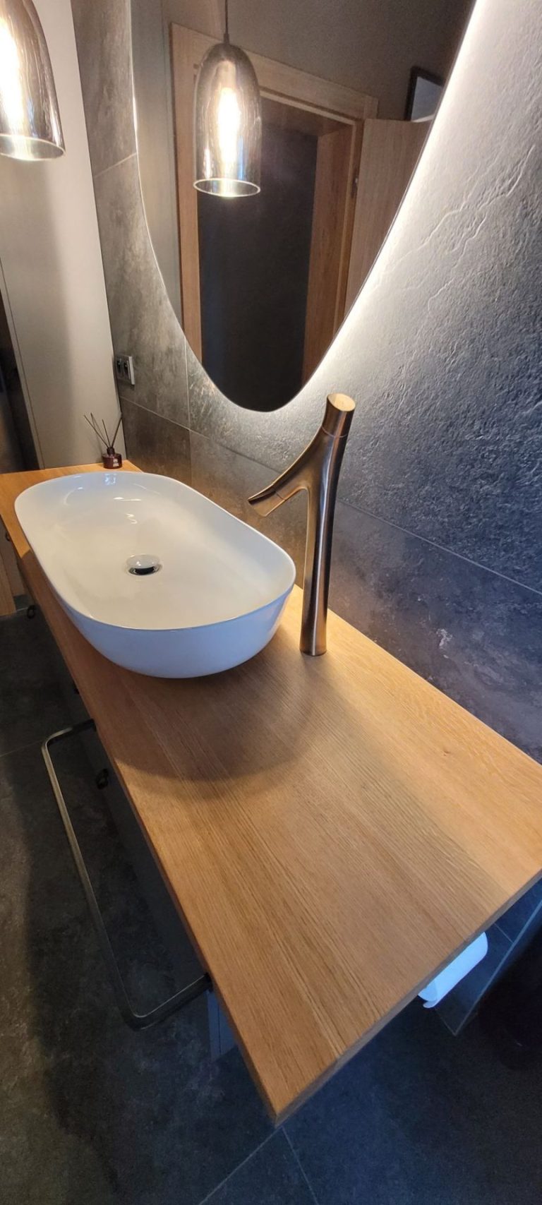 Oferujemy szeroki zakres personalizacji, który obejmuje m.in. dopasowanie kształtu i rozmiaru, wybór usłojenia i koloru drewna, a także technik wykończenia – od olejowania, przez lakierowanie, aż po szczotkowanie powierzchni. Na życzenie klienta możemy także przygotować otwory techniczne, np. pod gniazdka, zlewozmywaki lub systemy mocowania.
